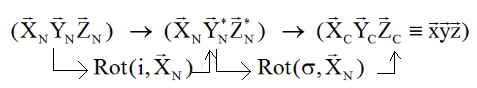 - Xn Yn Zn est le repère nodal associé à la ligne des nœuds