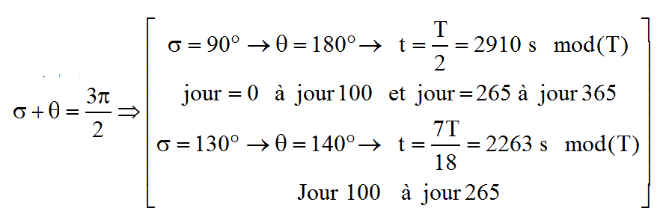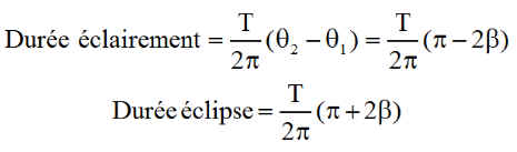 Remarque : ce résultat confirme de plus, qu'en éclipse la durée d'éclairement est supérieure à une demi période orbitale. On s'en doutait un peu !!!
