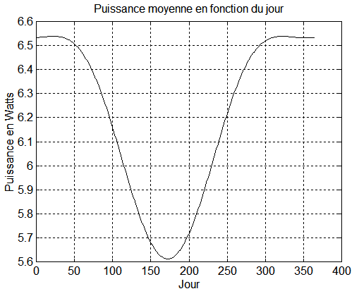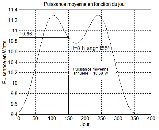 PUISSANCE MOYENNE ANNUELLE OPTIMISEE ( compte tenu des éclipses ) = 12.82 Watts