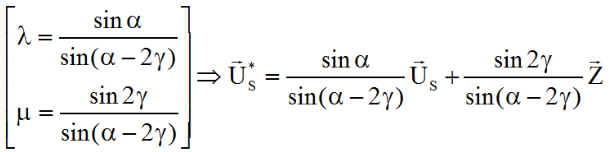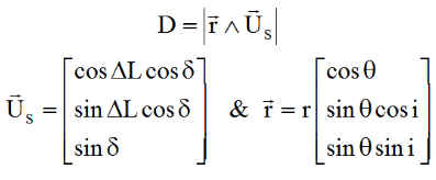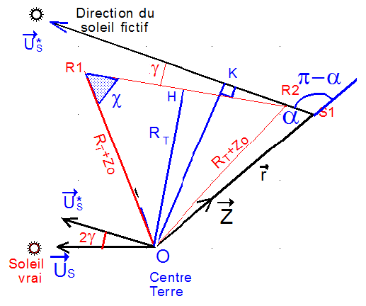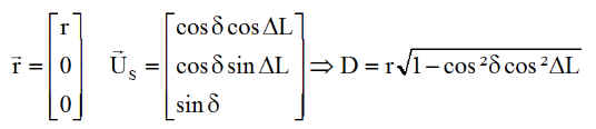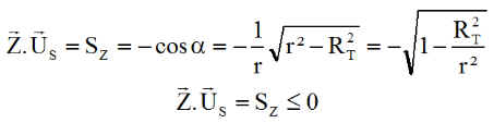 Plus haut, nous avons déjà calculé le vecteur Us dans XYZ, ce qui rend aisée la traduction de la relation, grâce à la troisième composante de Us: