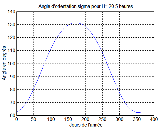 L'orientation du jour J= 130 est sigma= 124.7 degrés